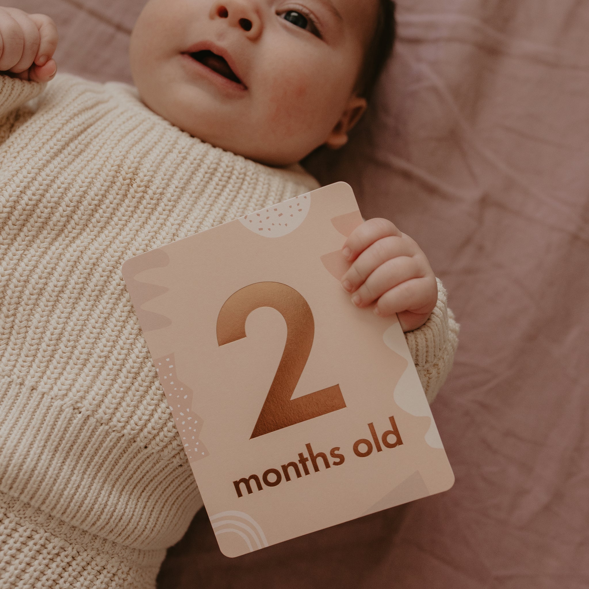 Includes 34 cards with rounded corners safe for little hands, a special card for your birth announcement, plus all the important milestones from one day old to one year old. All in gender neutral colours with gold foil on every card.