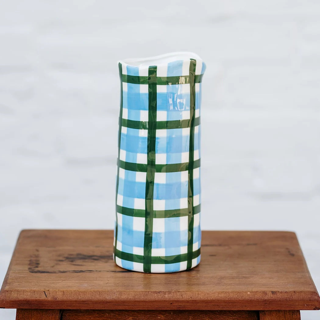 Medium Vase - Cornflower Blue & Emerald Green Gingham